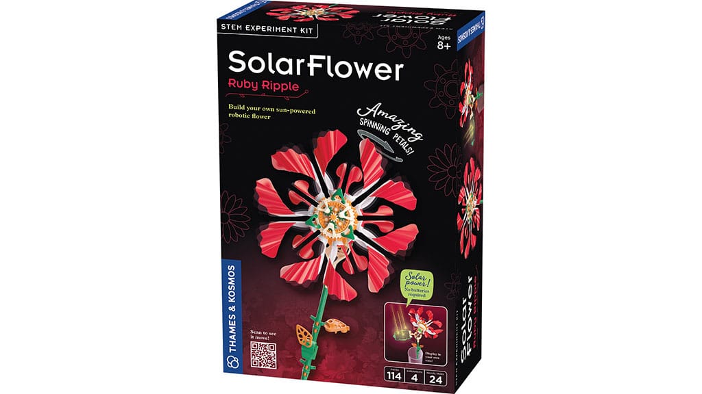 “A flower that never wilts and never runs out of batteries! This solar-powered buildable sculpture is equal parts engineering lesson and mesmerizing kinetic art. A great STEM gift that teaches kids about solar energy and mechanical systems.”